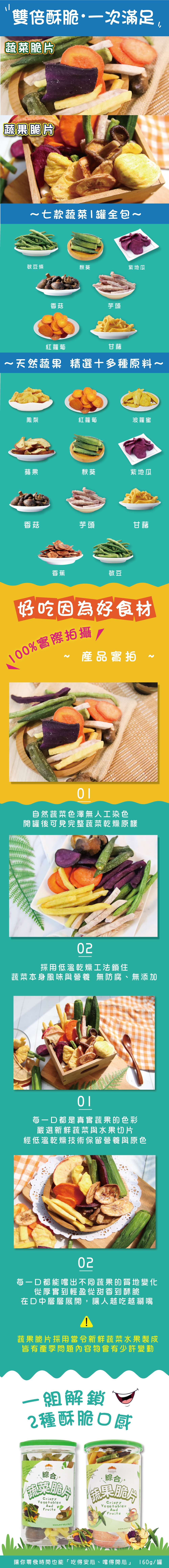 | 原產地 | 綜合蔬果脆片:台灣、越南、美國、泰國 綜合蔬菜脆片:越南、台灣 |