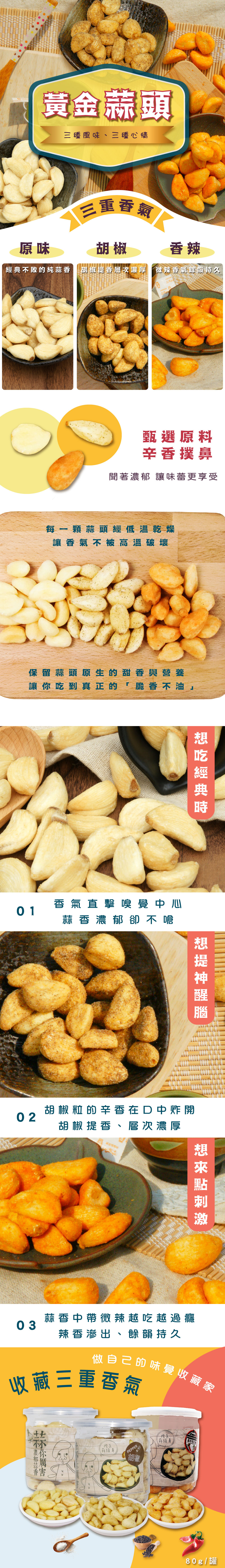 | 商品名稱 | 黃金蒜頭-原味/胡椒/香辣 |