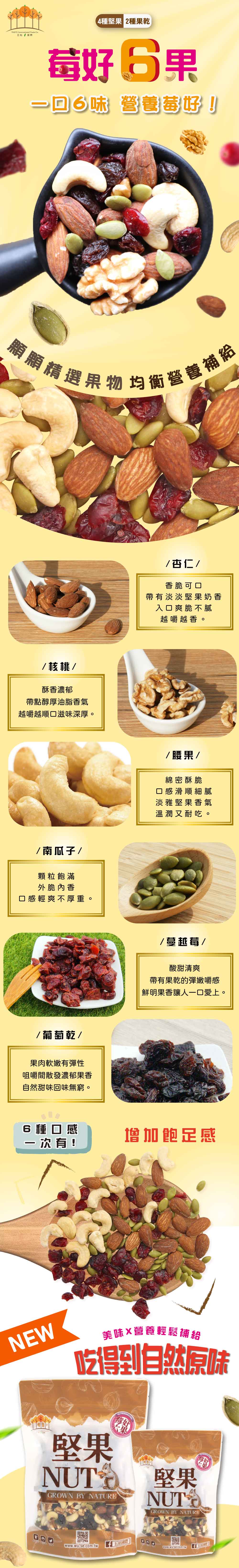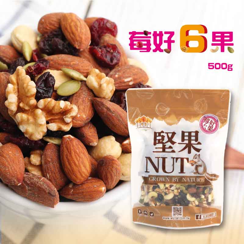莓好6種果物、杏仁、核桃、腰果、南瓜子、蔓越莓、葡萄乾